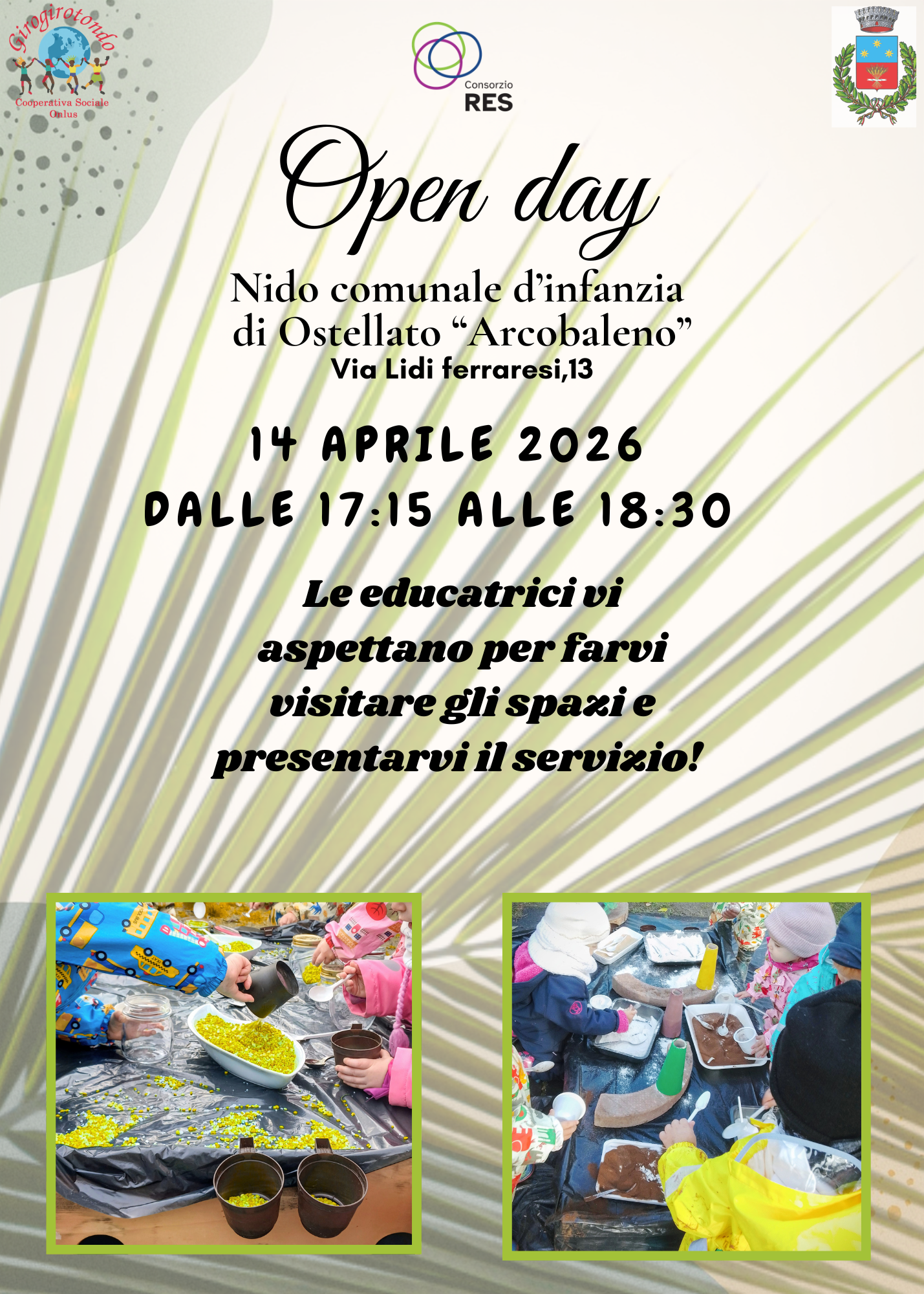 - presso il Nido comunale “Arcobaleno”, via Lidi Ferraresi 13 – Fiscaglia, che accoglie bambini dai 3 ai 36 mesi;